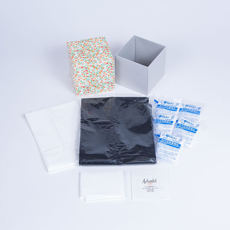 | 内容物 | 抗菌性凝固剤(7g):5袋 排便袋(PE製黒):5袋 大型外袋(PE製白):1袋 持ち運び袋(PE製白):1袋 取扱説明書 |